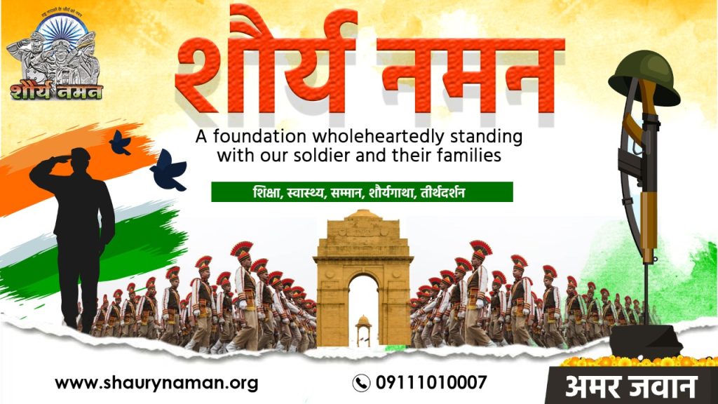 This name “Shaurya Naman” has become a definition of respect for martyrs, service to the families of martyrs and the strength of all soldiers that us organisation like Shaurya Naman with help of some people are there to serve the soldier’s family and take care of their parents. The organisation ensures to provide service and safety to the parents of martyrs and their families, working for the livelihood and good life of Shaurya Vadhu, construction and maintenance of memorials of martyrs, that includes working in the field of children’s education and pilgrimage.